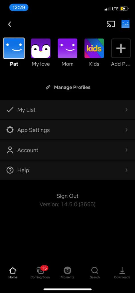 - アプリを開く ネットフリックス プロファイルを選択します。