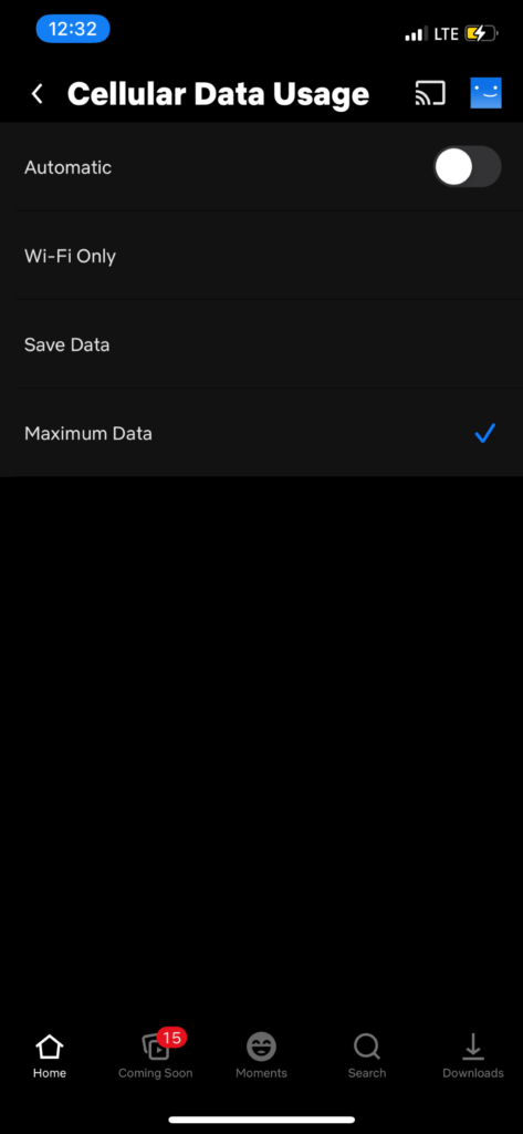 これを行うと、 ネットフリックス モバイル デバイスでコンテンツをストリーミングするために必要なだけのデータを使用しますが、このオプションを選択するのは、データに制限がない場合 (または超過料金を無制限に支払う場合) に限られます。 モバイルデータを急速に消費します