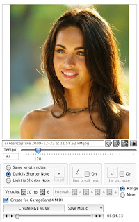 これは 色を変換する 画像を構成するRGB(赤、緑、青)を基に、 音で. プログラムは、画像の左上から右下に向かってピクセルの RGB 値を読み取ります。 各ピクセルは RGB 値によって与えられる 3 音のハーモニーを生成し、音の長さは明るさによって決まります。 RGB 値 120 または 121 はスケールの中央の C であり、黒い点は無音に相当します。