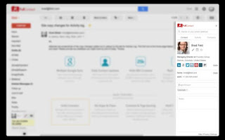 類似アプリ、より完全で自由です Gmail のディスカバリー、Gmail で連絡先のソーシャル プロフィールを表示する別の Chrome 拡張機能。 これにより、Gmail にサイドバーが追加され、受信または送信されたメッセージでクリックされた電子メール アドレスに関するすべての情報が表示されます。 サイドバーは 3 つのタブで構成されています。1 つは連絡先のソーシャル カード、もう 1 つは Twitter アクティビティ (ある場合)、もう 1 つはメール アドレスが属する会社に関する情報です。